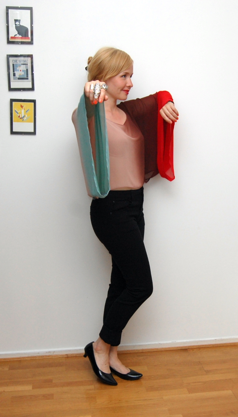 Here's an outfit from the last week. I finally finished these pants, again own doings&design. Those became my favorites right away, one week and I've already worn them three times! :) I''m pretty pleased how this outfit turned out too. When trying to figure outor the first time what to wear with the pants, I realized loose t-shirts and any other relaxed top would look like wandering around in my pajamas...